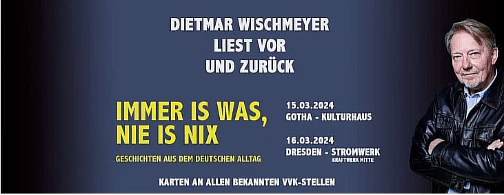 Jeden Mittwoch höre ich auf meinem Stammsender RadioEins die Kolumne von Dietmar Wischmeyer, der mit viel schwarzem Humor und spitzer Zunge die Zu- und Umstände der aktuellen Lage in Deutschland erläutert. Auch live lässt sich dieser Mann erleben, alle Termine HIER. Unterwegs ist er mit seinem Programm „Immer is was, nie is nix“ und damit spricht er mir förmlich aus der Seele, weswegen ich diese Zeile zum Titel dieses Beitrages erkoren habe. Dietmar Wischmeyer – ich kann ihn nur empfehlen, geht da mal hin!